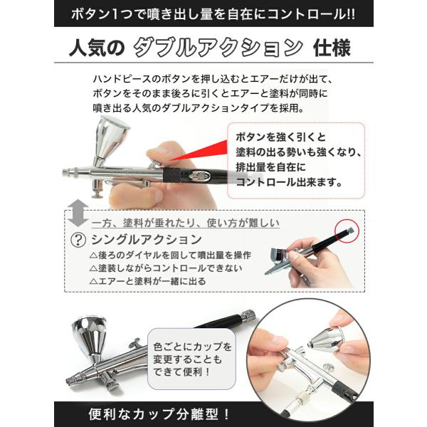 エアブラシ 充電式 コンプレッサーセット レイウッド NITRO-COMP 塗装 持ち運び ダブルアクション 自動電源 オートスイッチ 塗料 カップ 一体式 0.3 口径
