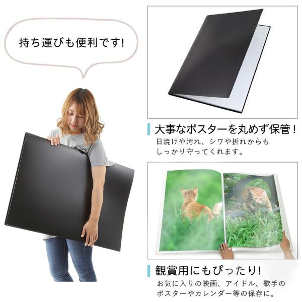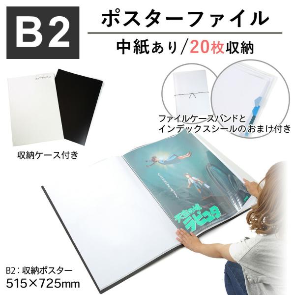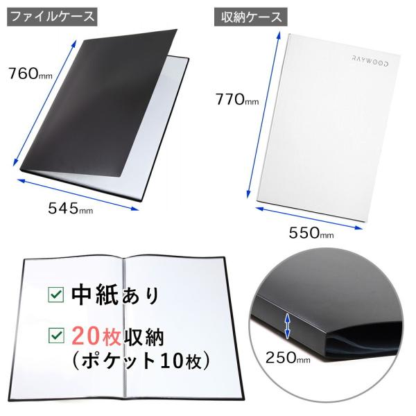 RAYWOOD B2 ポスターファイル ケース 中紙あり 保管用収納ケース付き リフィル クリアポケット 保存 コレクション (ブラック 20枚)