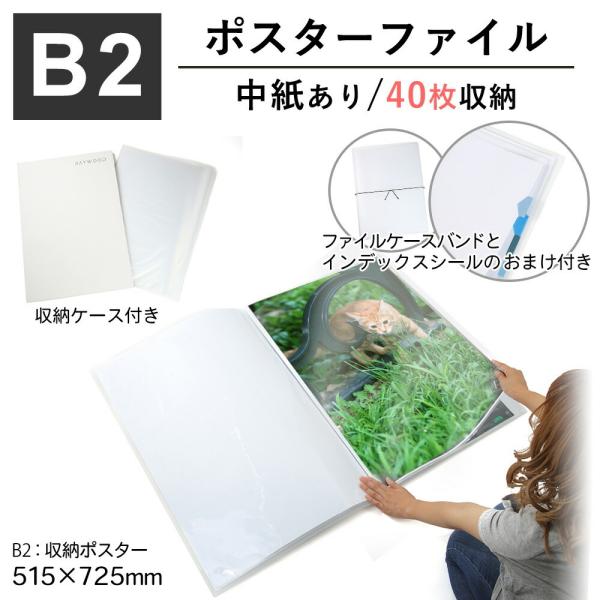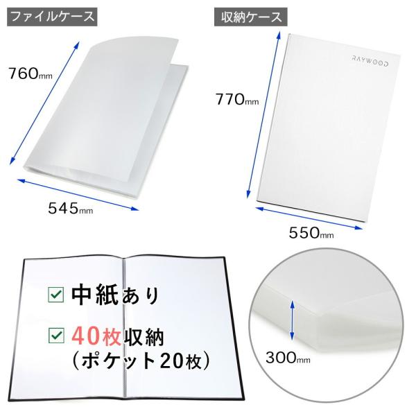RAYWOOD B2 ポスターファイル ケース 中紙あり 保管用収納ケース付き リフィル クリアポケット 保存 コレクション (クリア40枚)