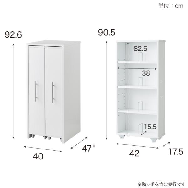 本棚 スライド スリム 2列 ハーフタイプ 大容量 キャスター付き
