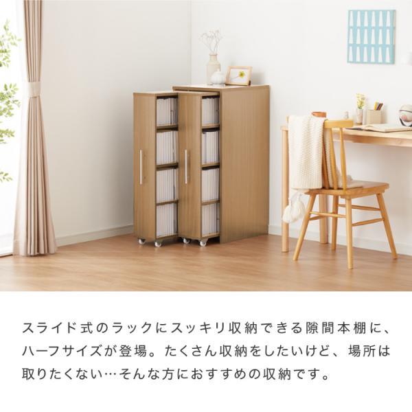 本棚 スライド スリム 2列 ハーフタイプ 大容量 キャスター付き スライド本棚 書棚 隙間 収納 省スペース コンパクト コミックラック CDラック