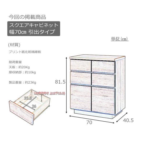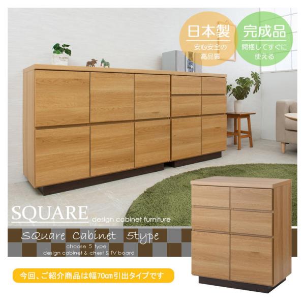 大川家具 日本製 float スクエア キャビネット 幅70 扉引き出しタイプ スクエア 木目調 木製 ラック 収納 リビング 大容量 コンパクト 本棚 代引不可