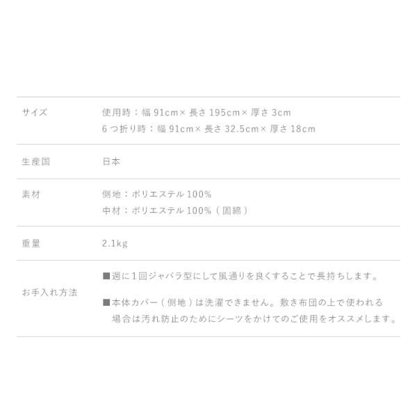 国産 シングル 6つ折り 高反発 3cm厚 二枚重さね 通気性