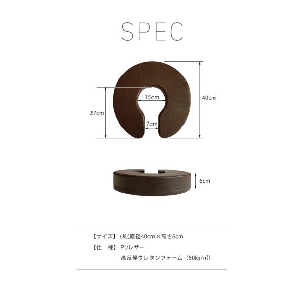 円座クッション 産後 U字 高反発 直径40cm 厚さ6cm 50D PUレザー お手入れ簡単 クッション 痔 術後 マタニティ チェア 椅子 穴あき