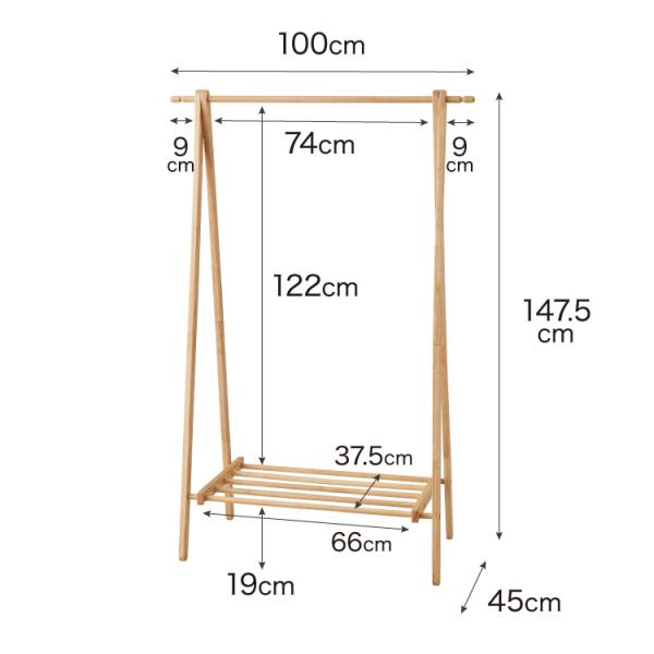 天然木 ハンガーラック 幅100cm 棚付き A型ハンガーラック