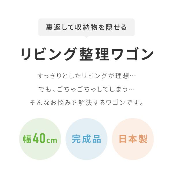 日本製 隠せるリビング整理ワゴン 幅40cm コンセント付き