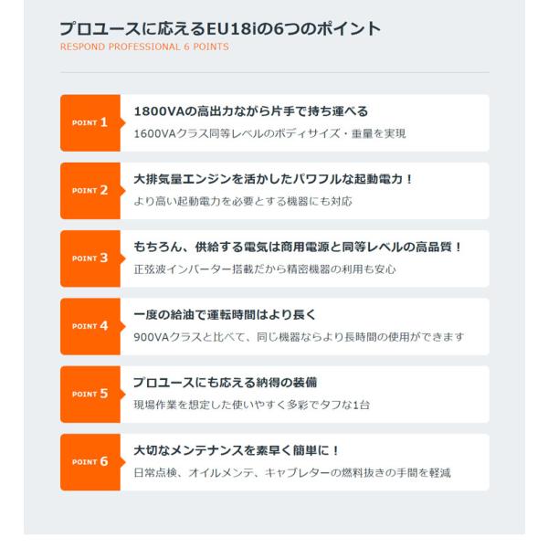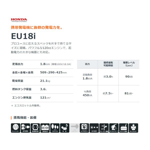ホンダ EU18I 交直両用 インバーター発電機 KK9N0D18P 発電機 120cc エンジン 搭載 長時間使用可能 軽量 簡単メンテナンス管理