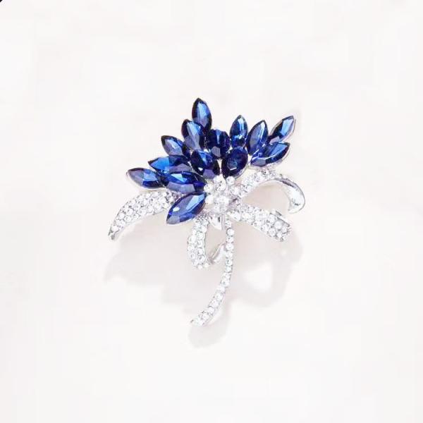 コサージュ ブローチ レディース アクセサリー ダイヤ ブルー 花 花束
