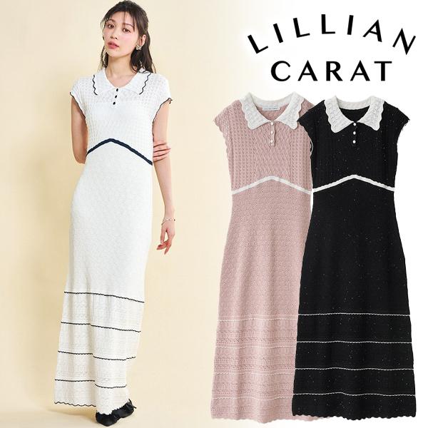 即日発送/LILLIAN CARAT リリアンカラット シャツカラーラメクロシェワンピース 46235330 2026春夏 爆買