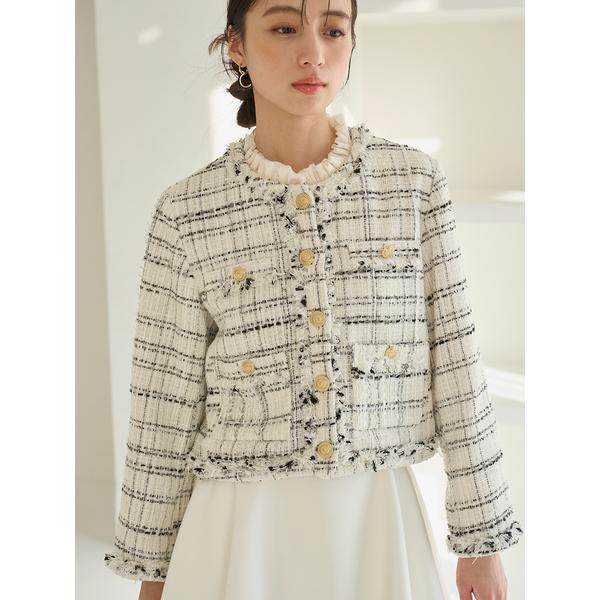 \期間限定10%OFF/即日発送/SNIDEL スナイデル デタッチャブルフリルカラーツイードジャケット SWFJ261071 26SS 春夏