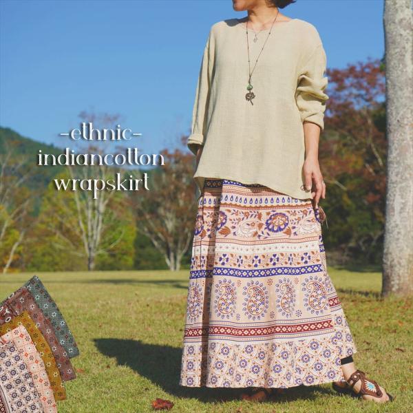 エスニック 巻きスカート ラップスカート マキシ丈 コットン生地 5color ロングスカート コットン素材 透け感無し 巻きスカート アジアン