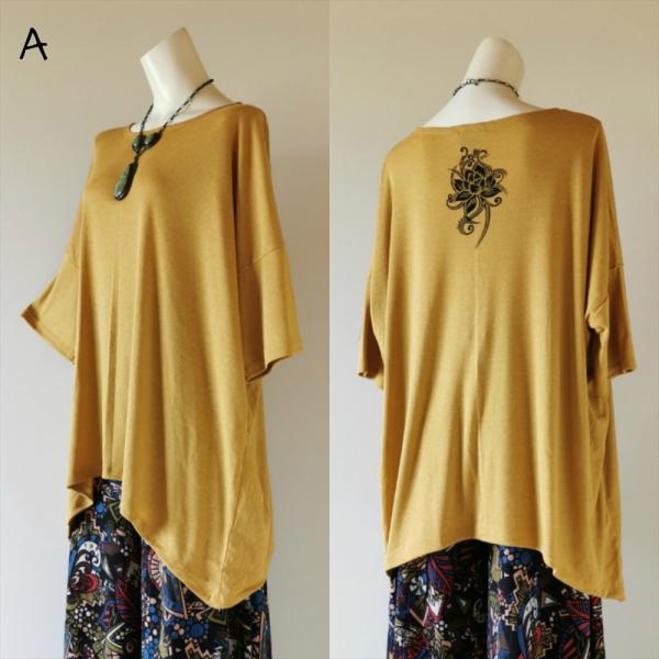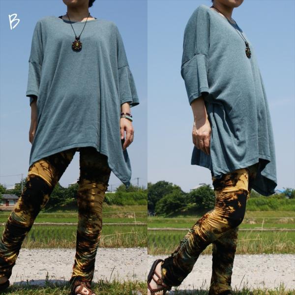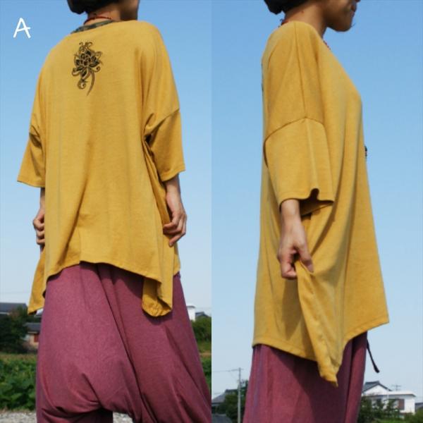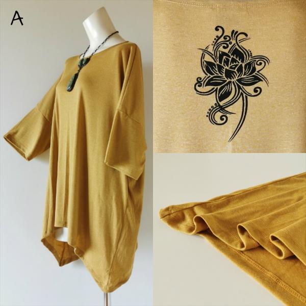 ドルマントップス コットン シンプル ロータスプリント 5color エスニック ユニセックス アジアン 七分袖トップス エスニック アースカラー 杢カラー