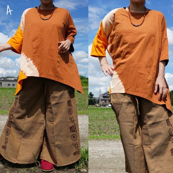 エスニック タイダイ コットン ビッグ トップス 3color コットン素材 ユニセックス アジアントップス エスニック アースカラー tiedye