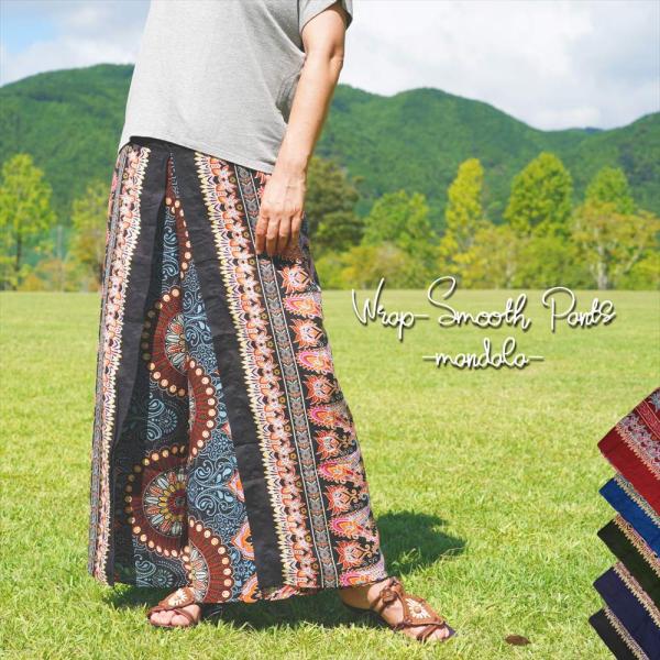 エスニック ラップパンツ 曼荼羅 レトロ 5color アジアン シャーリング ロンスカ風 ヨガ ガウチョパンツ 巻きパンツ オリエンタル