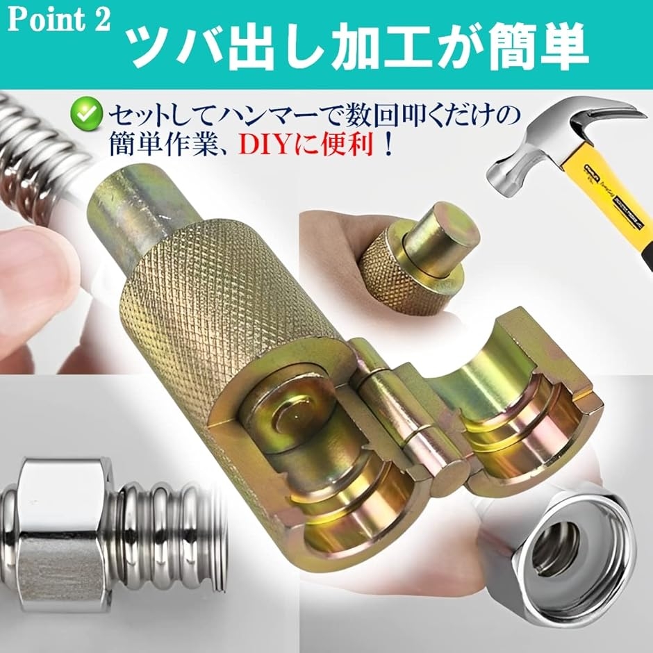 水道管 フレキ管 ツバ出し工具 3山 ハンマータイプ フレキパイプ用 ツバ出し機 カシメ 防滑加工 DIY 水回り (16mm 4分)