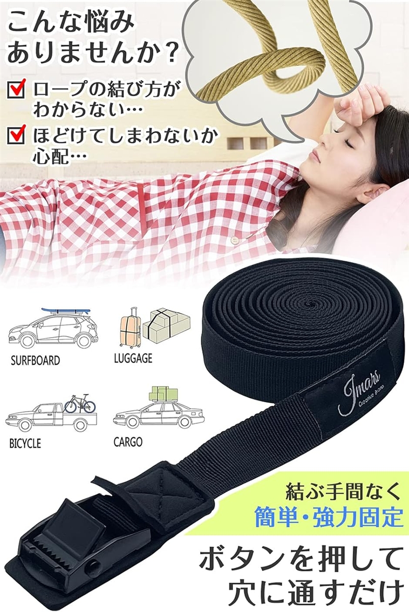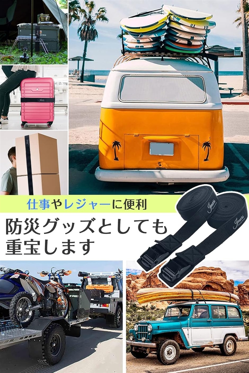 引っ越し・アウトドア・車載など、あらゆる荷物の固定に便利なベルトです。