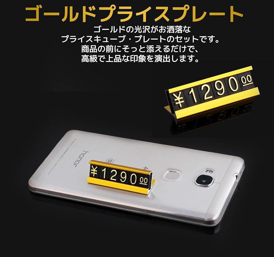 プライスカード プライス台 セット プレート 値札 キューブ 価格表示(ゴールド)