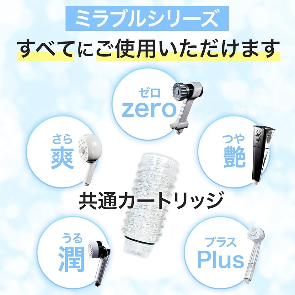 また、ミラブルプラスやミラブルゼロだけでなくリファやボリーナ、タカギやサンエイなど一般的なシャワーヘッドであればホースの間にカートリッジを取り付けるだけで、すぐに使用できます。