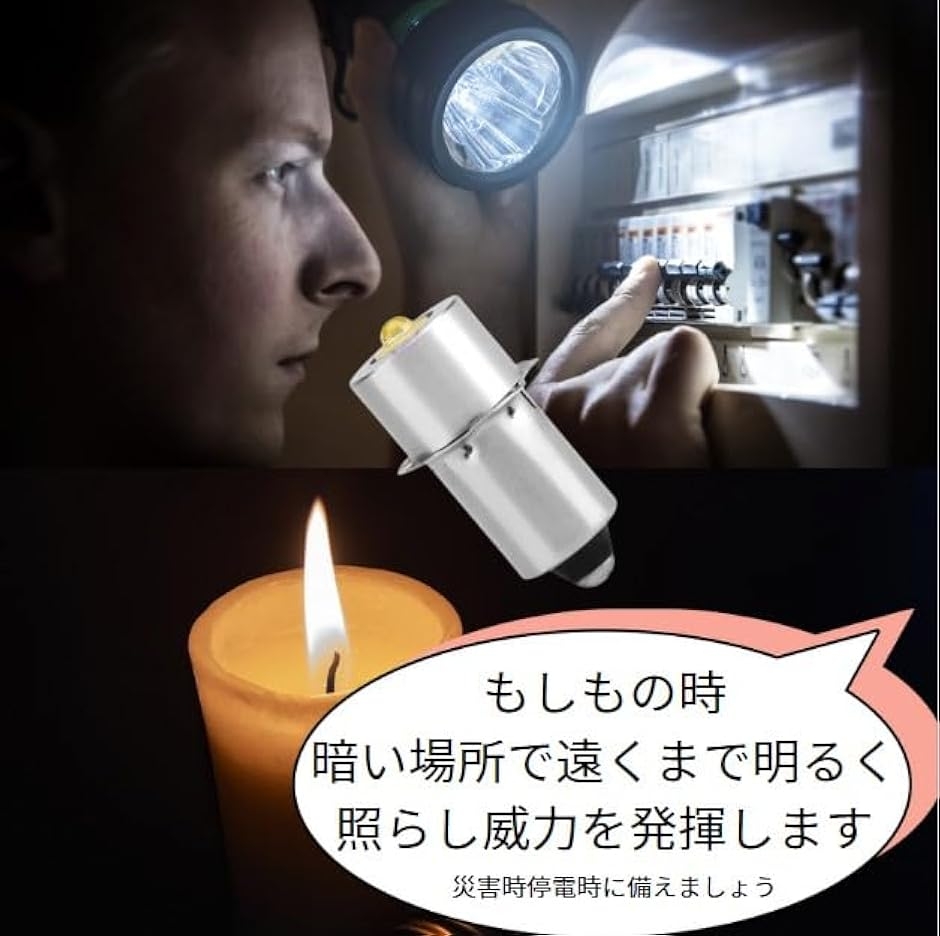 このLED交換懐中電灯電球はP13.5S形状の電球(バルブ)交換する事で簡単お手軽、迅速かつ効率的なLED仕様の懐中電灯にアップグレード。夜間停電時やもしもの時にもさらに明るくさらに遠くまで照らし出す事が可能となります。