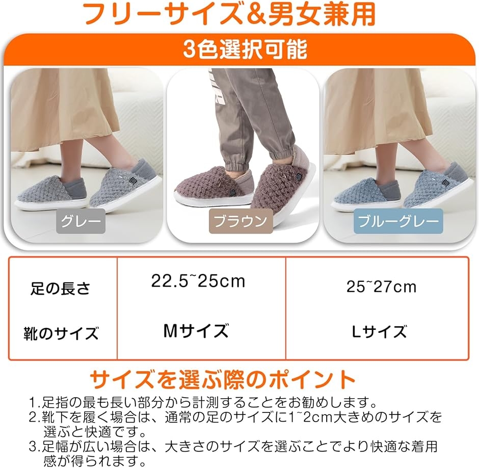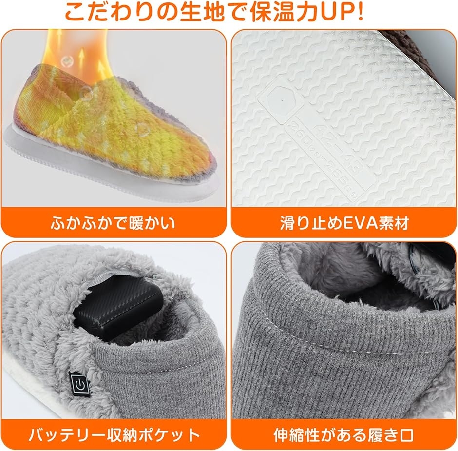 電気スリッパ コードレス 10秒速暖 フットウォーマー 足温器 充電式 ブーツ 歩ける ヒーター (グレー, L(25〜27.5cm))
