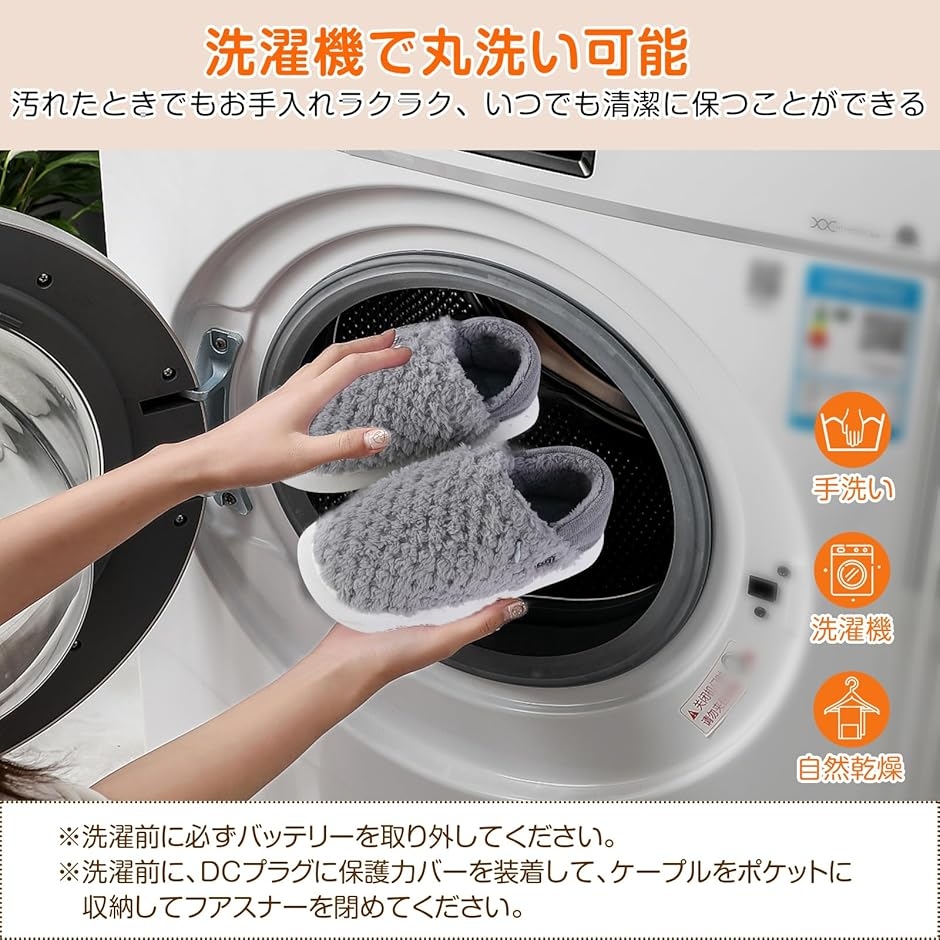 電気スリッパ コードレス 10秒速暖 フットウォーマー 足温器 充電式 電熱スリッパ 歩ける 洗える MDM (グレー, L(25〜27cm))