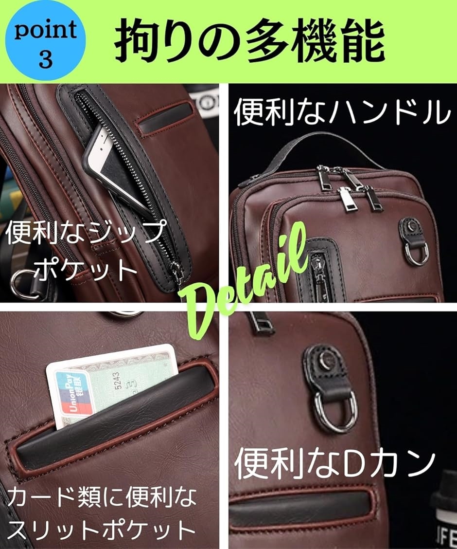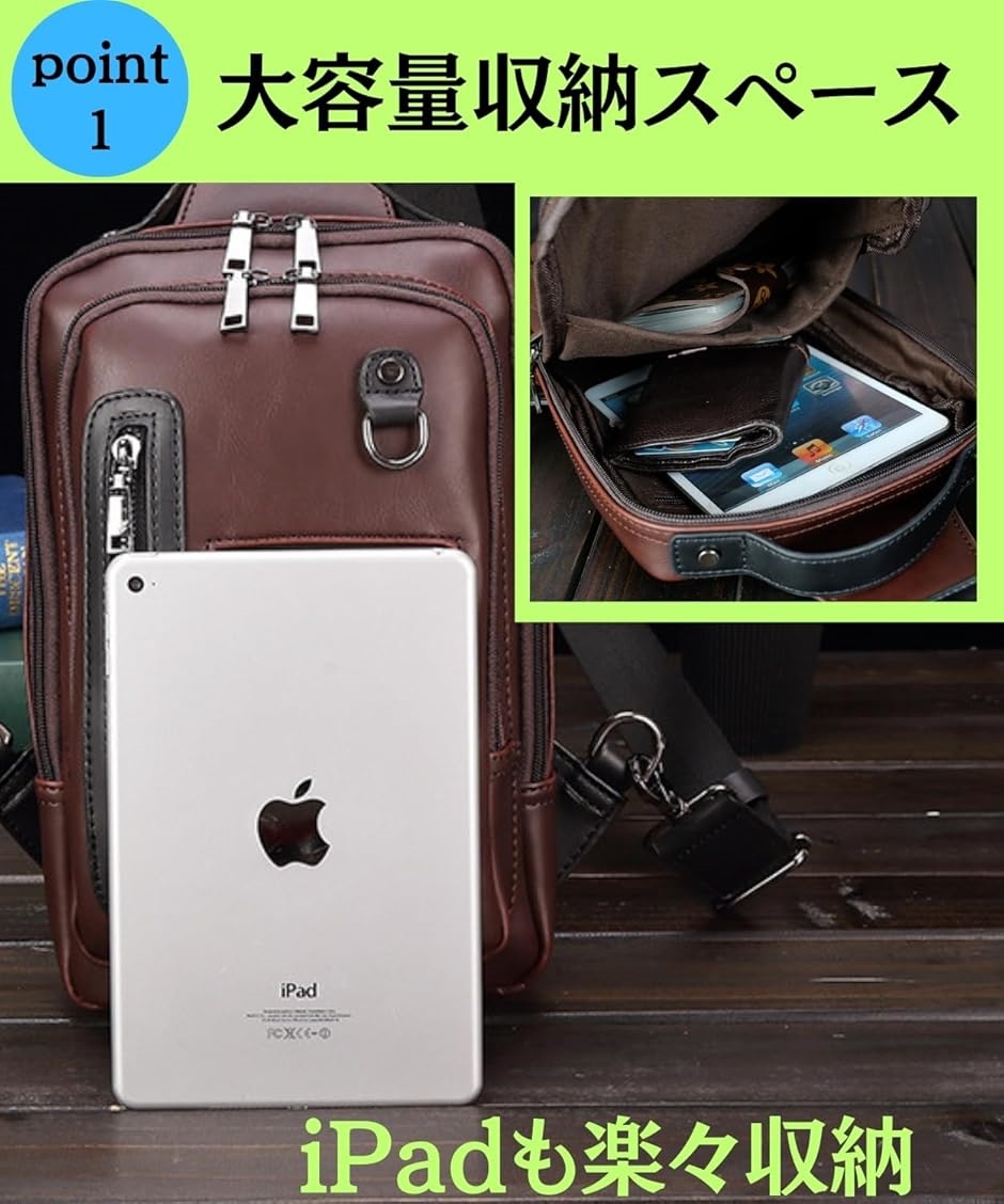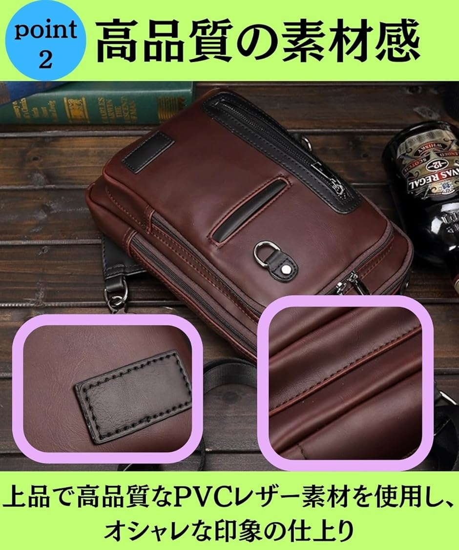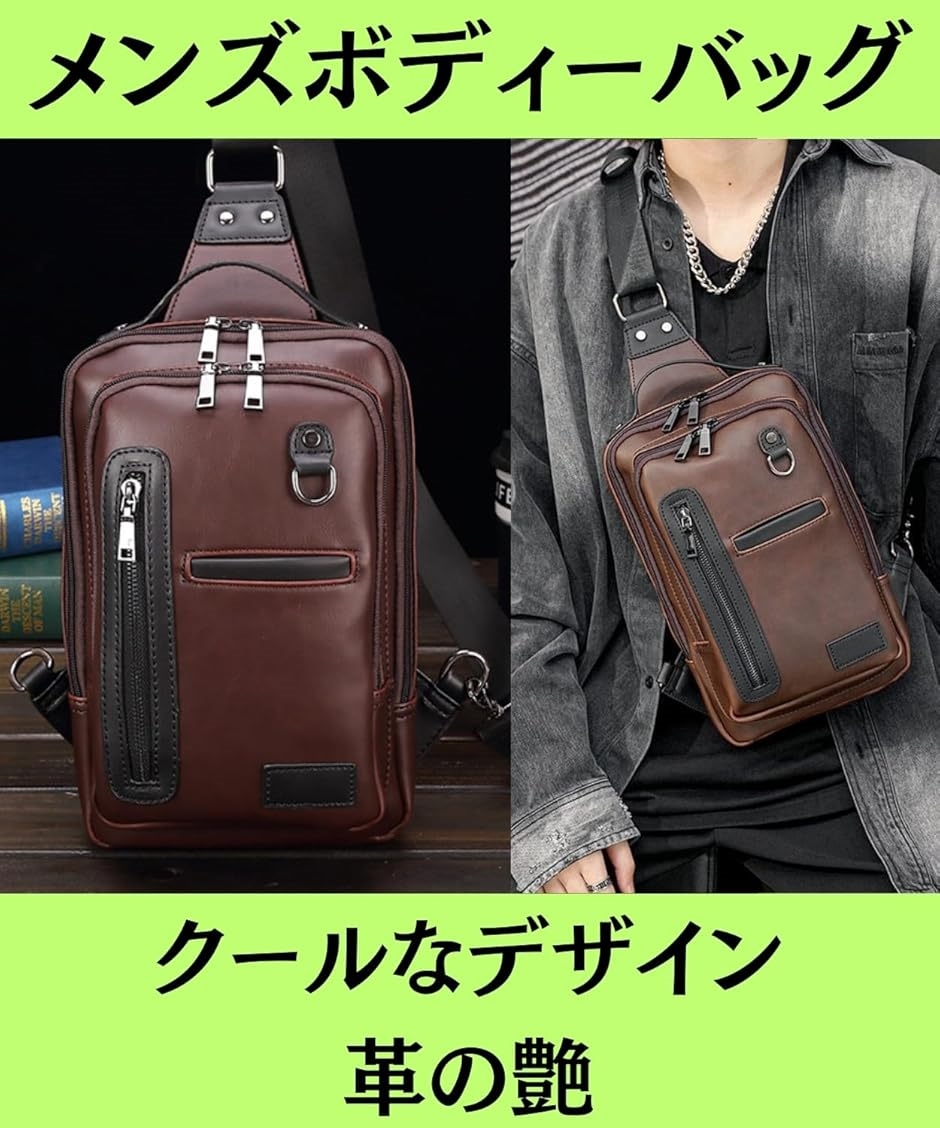 ルネノンソレイユ デザインx革の艶メンズ ボディーバック ボディバッグ カバン ショルダーバッグ 大容量 軽量(ブラウン, ミニ)