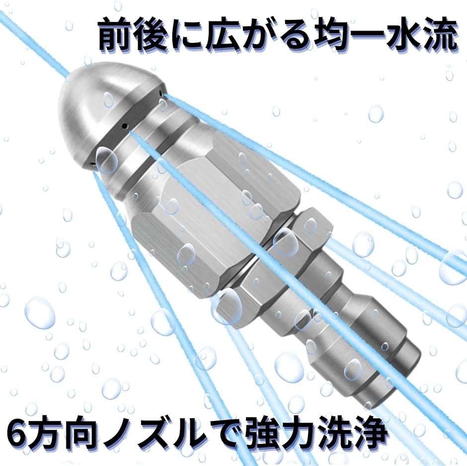 パワフルな性能: 高圧水流でパイプ内部を強力に洗浄し、頑固な詰まりを瞬時に解消。