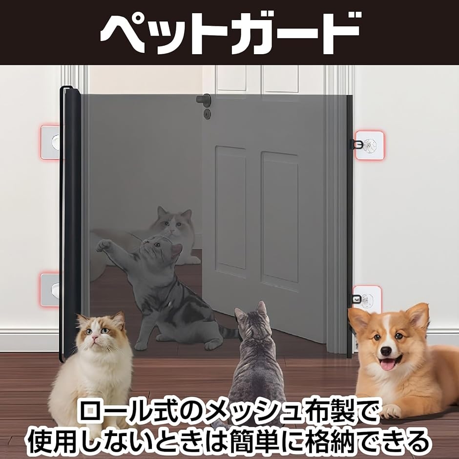 「犬・猫・赤ちゃんに安全な設計」 ペットガード:犬や猫が飛び越えにくい高さ(78cm)で、進入禁止エリアをしっかりと区切ります。