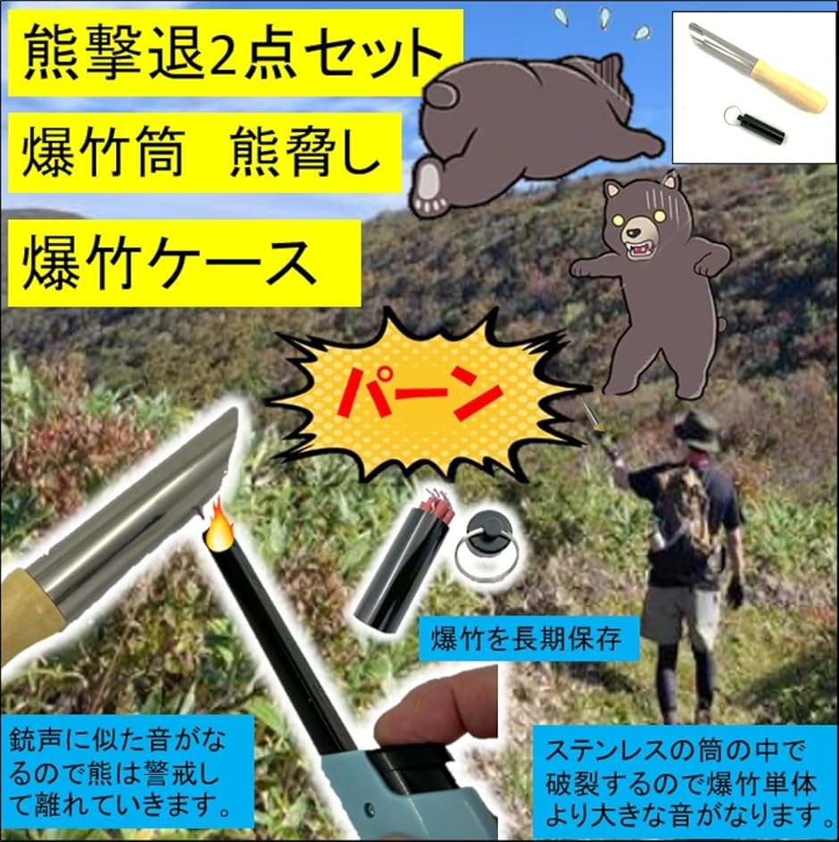 「爆竹用 筒 熊よけ」爆竹の音を「爆音」に変える。