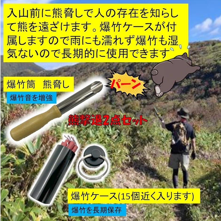 熊対策 爆竹用 筒 熊よけ 熊おどし 爆竹ケース付き 爆竹砲 登山 キャンプ 護身用 ヒグマ対策 熊脅し 爆竹筒 (熊脅し筒+爆竹ケース)