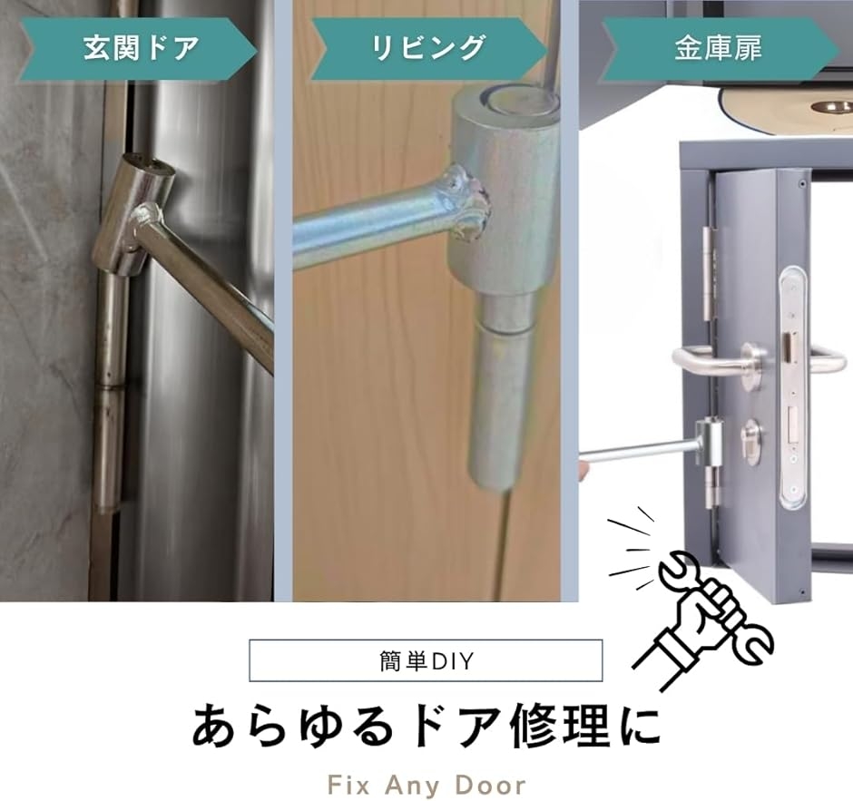 トルクのねじれを受け止め、日常の住宅補修から大型防火扉までしっかり矯正。