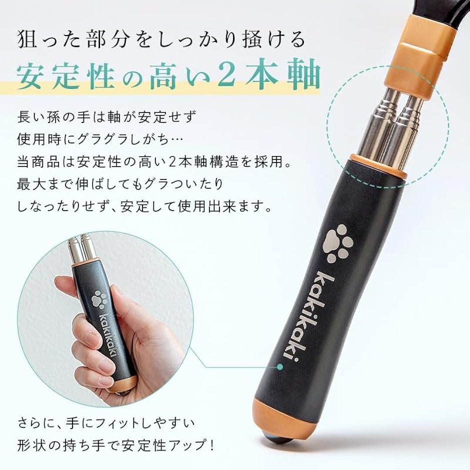孫の手 まごの手 伸縮 猫 背中かき棒 コンパクト 持ち運び 携帯 痒い ステンレス 折れにくい 2本構造 54cm (ブラック)
