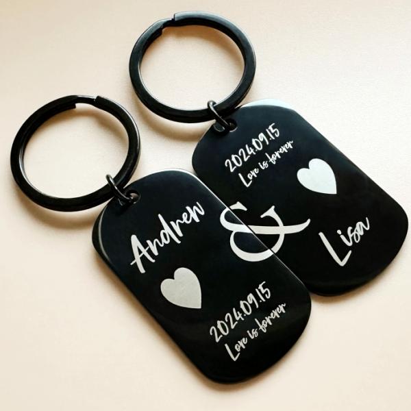 【2点セット】ステンレス製タグ ペア彫刻 ステンレスキーホルダー 名入れ 誕生日 クリスマス プレゼント ギフト 結婚記念日 カップル お揃い ペアセット