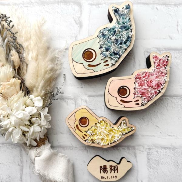 国産紀州熊野ひのき使用・ひのき鯉のぼり*花* プリザーブドフラワー こどもの日 初節句 男の子 出産祝い 置物 木製 コンパクト 水色 ピンク 黄色 可愛