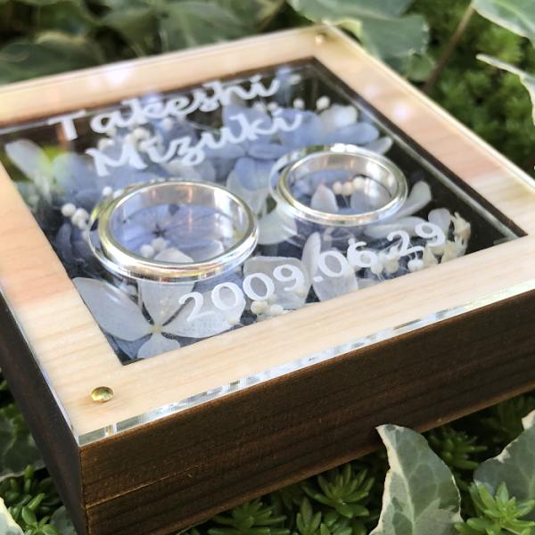 リングピローSquare プリザーブドフラワー 国産ひのき ペアリング 結婚指輪 ウェディング 結婚式 披露宴 ナチュラル 婚約