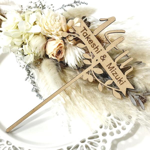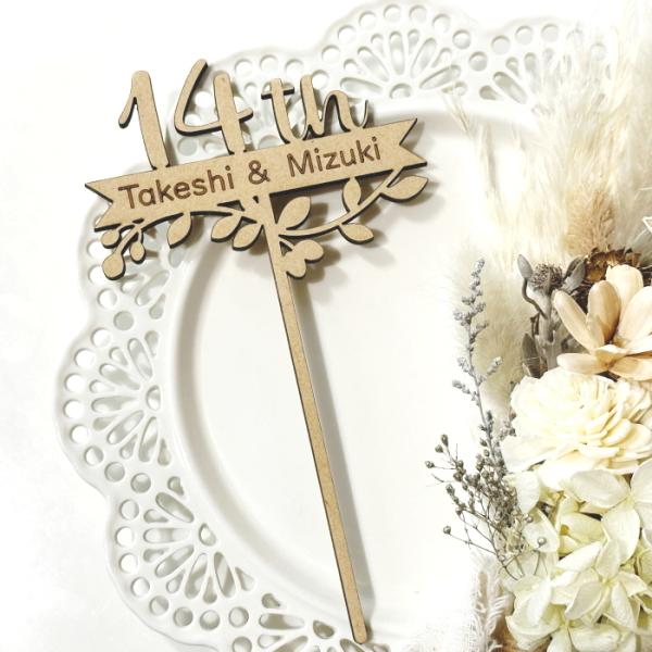 結婚記念日 アニバーサリー・ケーキトッパー ウェディング 木製 ケーキ キッチン雑貨 ナチュラル かわいい 名入れ オーダーメイド ハンドメイド