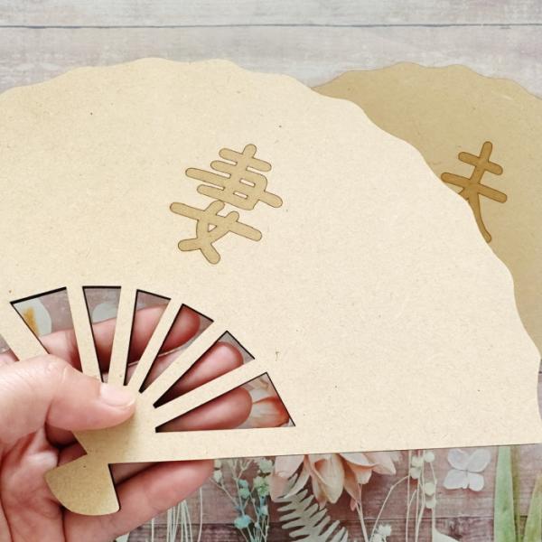 結婚報告の写真撮影にピッタリな扇子型の木製レターバナーです(^-^)