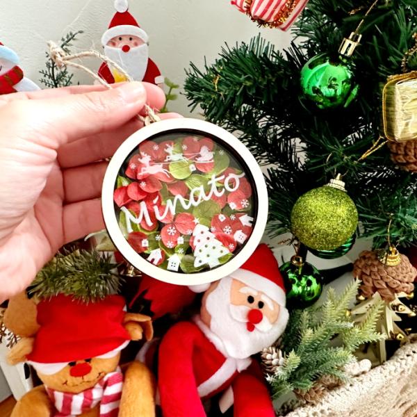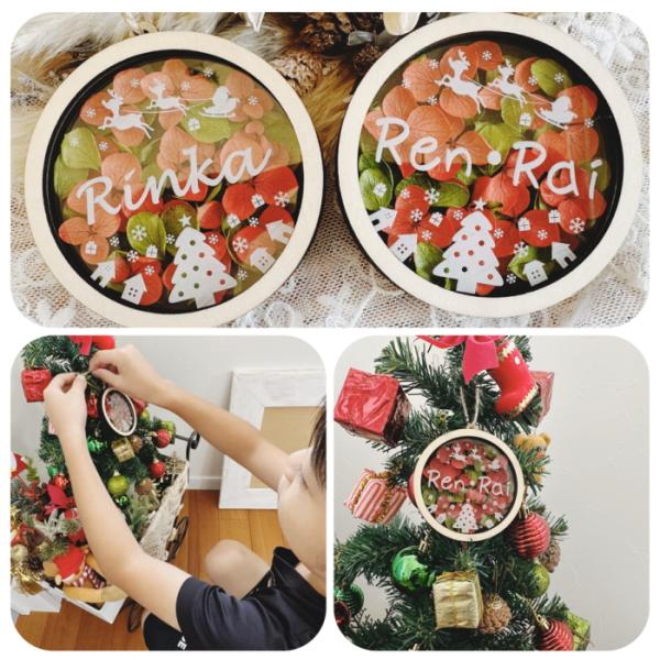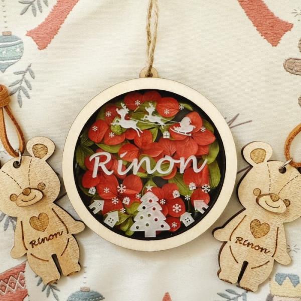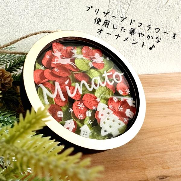 お名前彫刻フラワーオーナメント・クリスマス 名入れ 花 刻印 プリザーブドフラワー クリスマスプレゼント クリスマスツリー 飾り オーダー 男の子 女の子