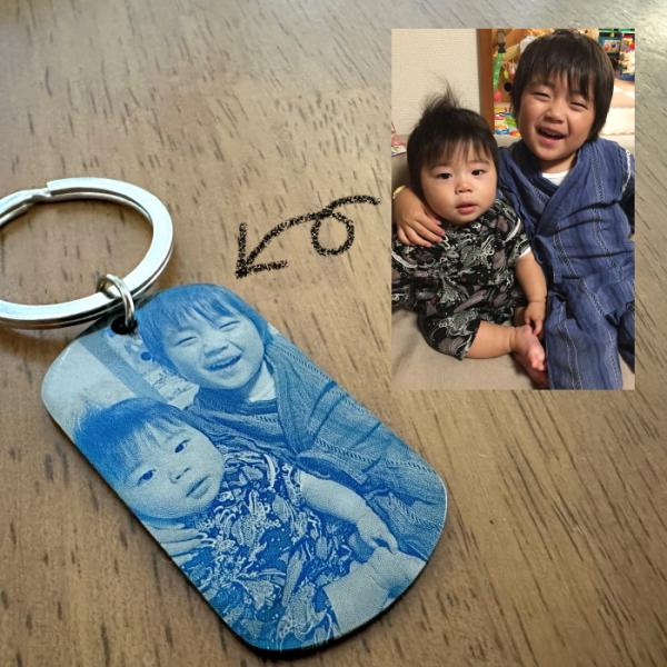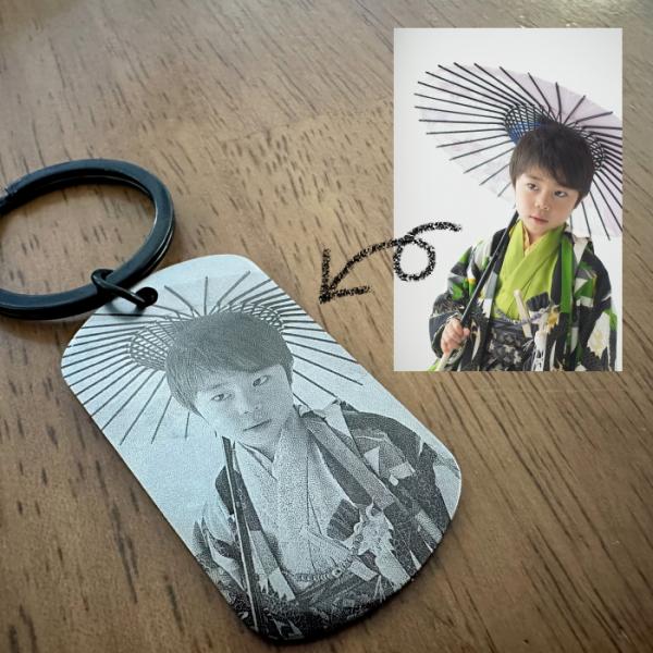 思い出の写真をステンレス製タグへ彫刻