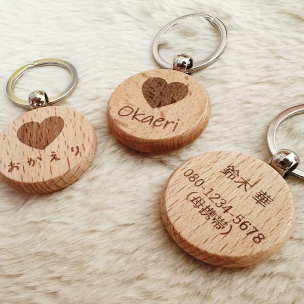 おかえり見守りキーホルダー 迷子札 名入れ 電話番号 彫刻 刻印 お出かけ 迷子 木製 男の子 女の子 ナチュラル シンプル プレゼント プチギフト ドッグタグ