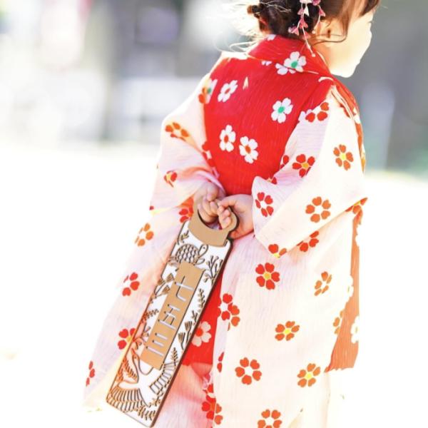 七五三の撮影小物に♪木×和紙を使用した千歳飴風プレート