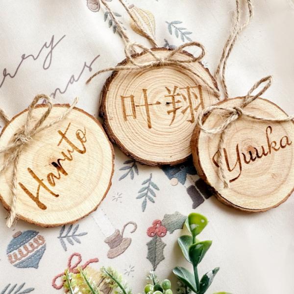 【名入れ】天然木オーナメント クリスマス プレゼント オーナメント 刻印 彫刻 男の子 女の子 ナチュラル 天然木 木製 切株 輪切り Xmas Christmas