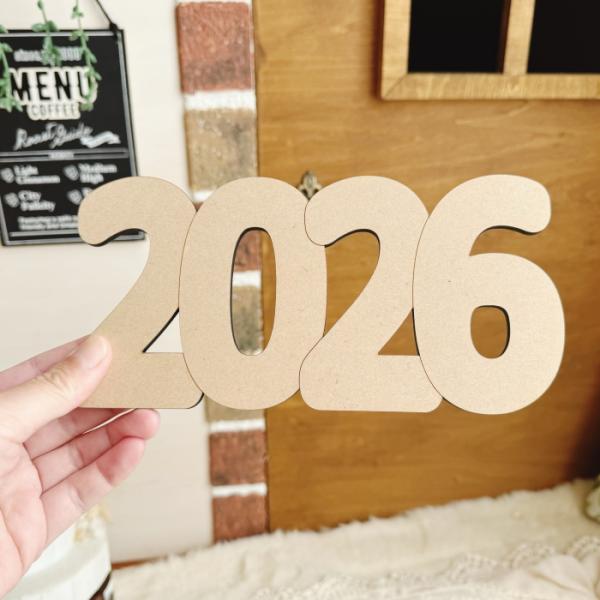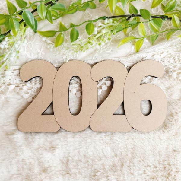 西暦レターバナー 2025年 2026年 お正月 飾り 木製 ナチュラル 新年 年賀状フォト 撮影小物 数字 ナンバー