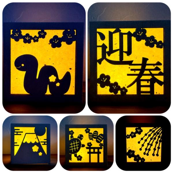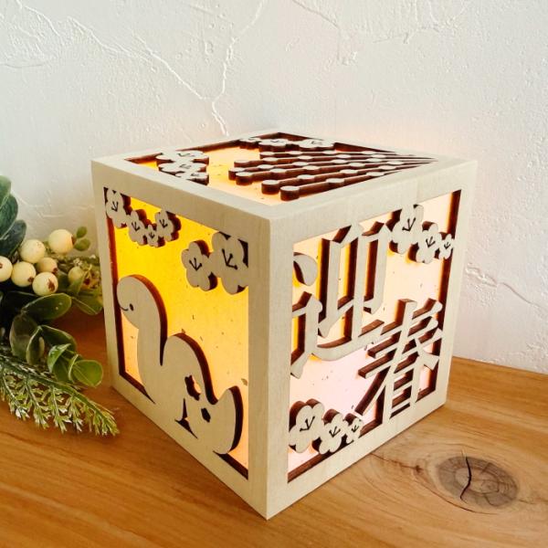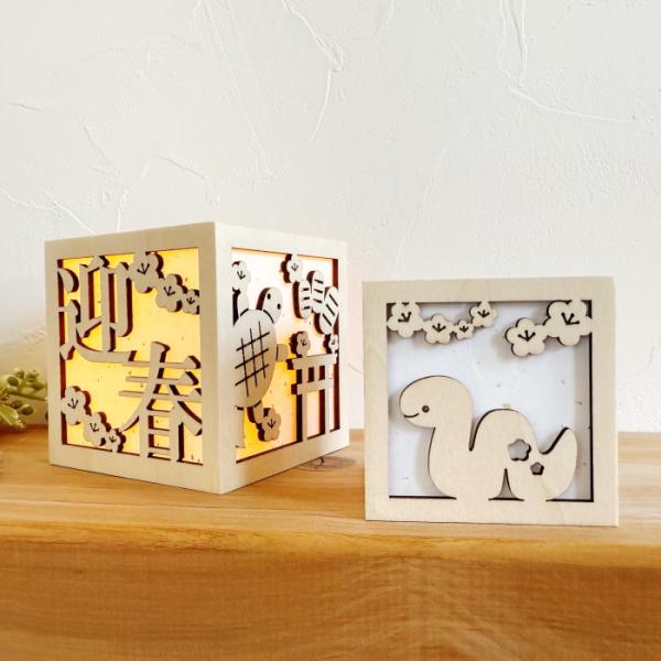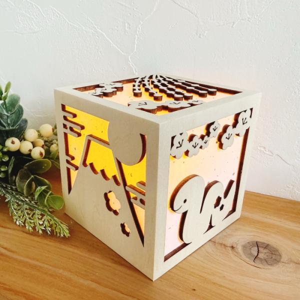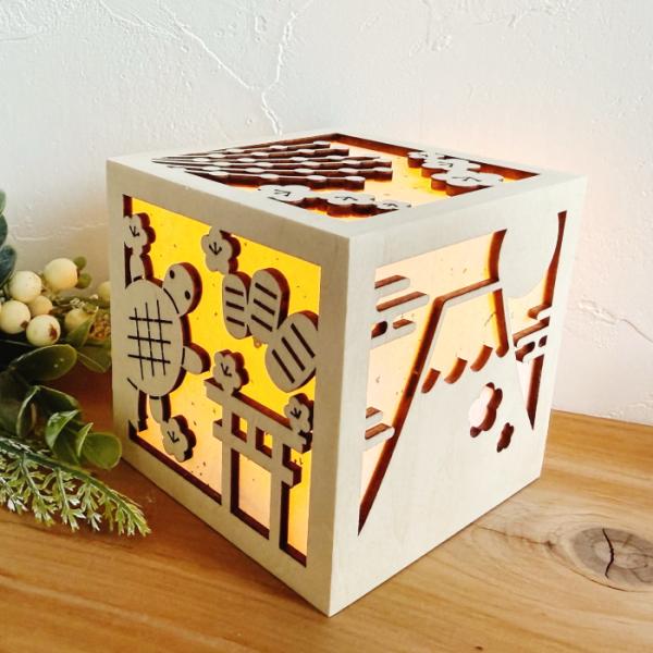 お正月ランプカバー*巳年 ライト 照明 お飾り 干支 木製 和紙 インテリア 可愛い 小さい コンパクト プレゼント ギフト 迎春 富士山 キューブ 四角 正方形