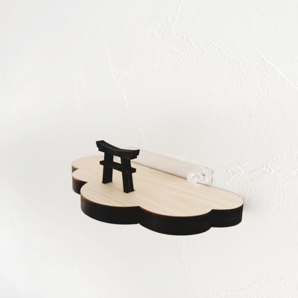 国産紀州熊野ひのき使用・筋斗雲お札立て お正月 お札 ひのき 天然木 木製 壁 押しピン 画鋲 神棚 シンプル ナチュラル 神具 鳥居 雲 インテリア 省スペース