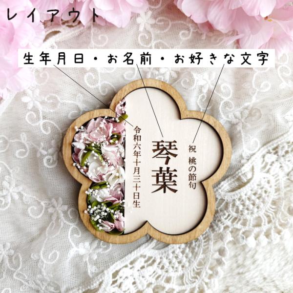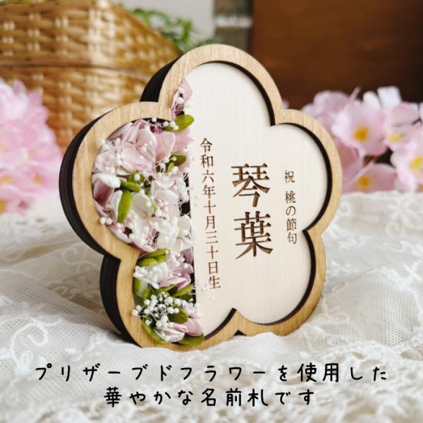お花名前札*縦書き プリザーブドフラワー 木製 名入れ ひな祭り 桃の節句 初節句 命名 木札 立札 出産祝い 名前旗 女の子 プレゼント ギフト お祝い 可愛い