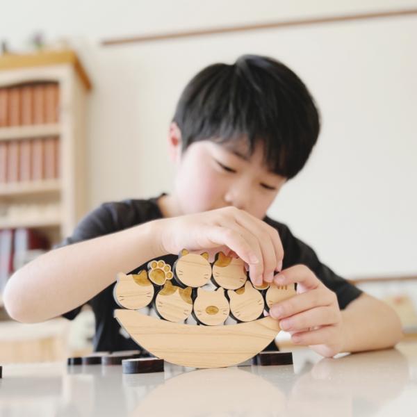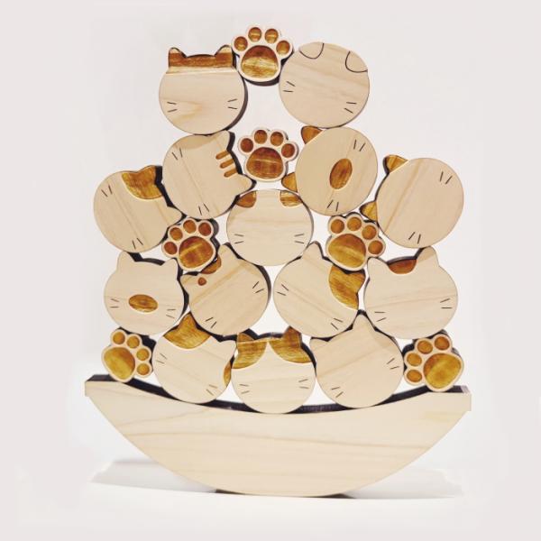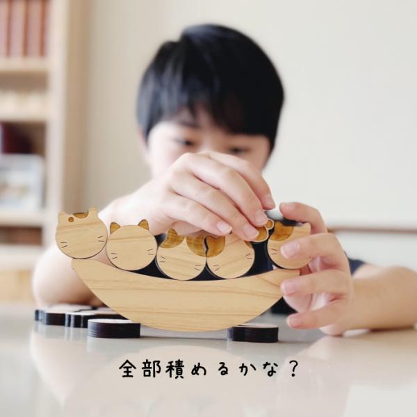 【国産ひのき】ねこ積む積む 積み木 バランス ゲーム おもちゃ 木製 知育 猫 プレゼント ギフト かわいい オシャレ 男の子 女の子 インテリア ナチュラル