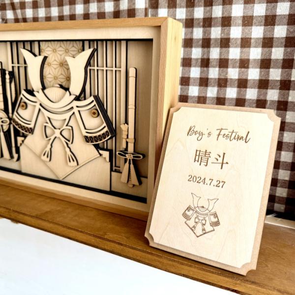 【お急ぎ対応】こどもの日兜プレート・タペストリー 端午の節句 五月人形 木製 名前旗 名前札 命名 節句祝い 男の子 プレゼント コンパクト 省スペース