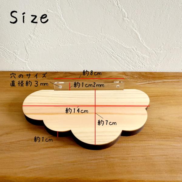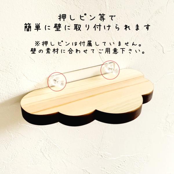 国産紀州熊野ひのき使用・筋斗雲ミニウォールシェルフ 木製 棚 コンパクト 画鋲 押しピン 省スペース 壁 シンプル