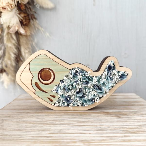国産紀州熊野ひのき使用・ひのき鯉のぼり*花* プリザーブドフラワー こどもの日 初節句 男の子 出産祝い 置物 木製 コンパクト 水色 ピンク 黄色 可愛
